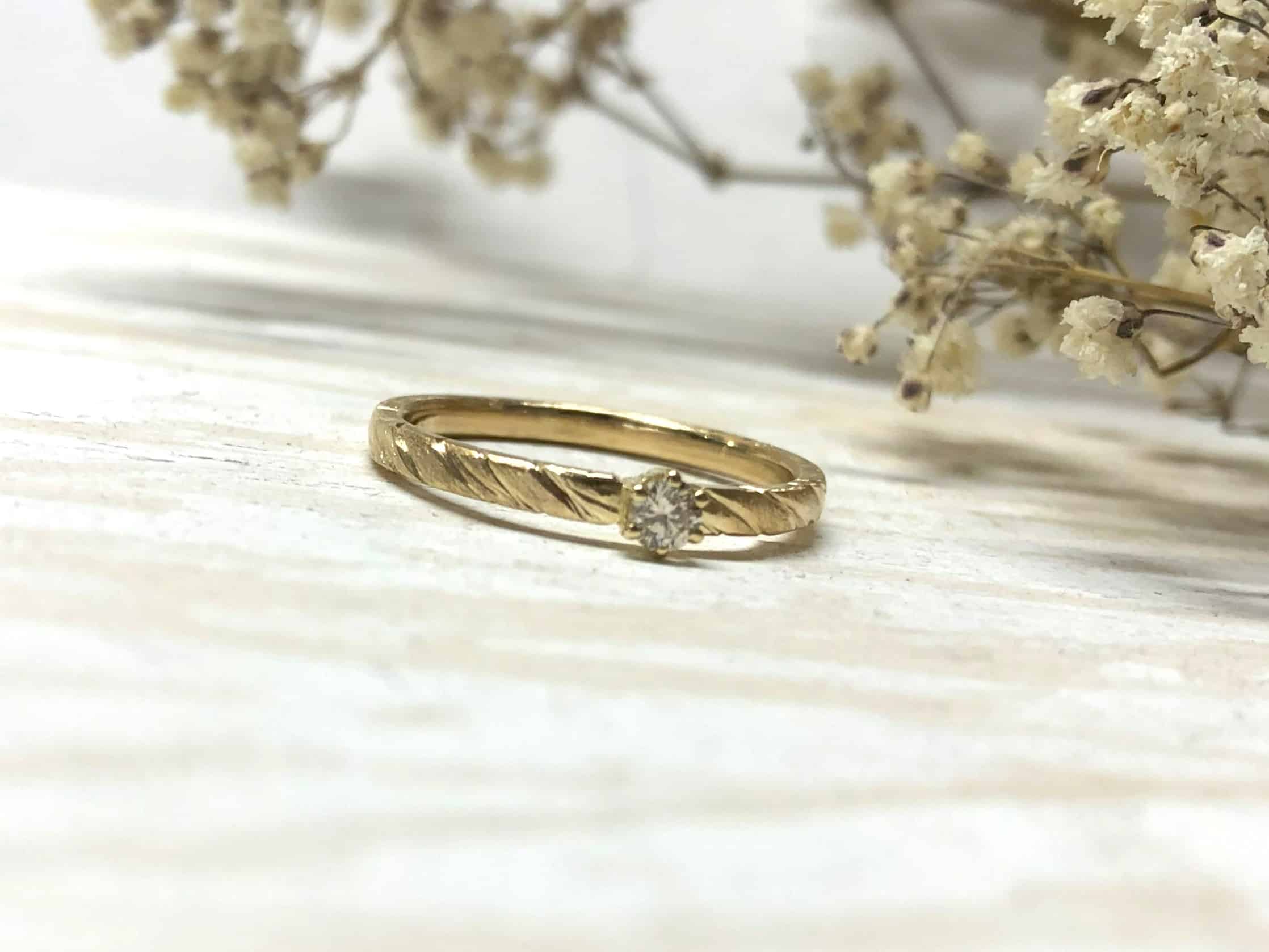 Der Verlobungsring Vivina ist einer unserer Lieblinge, weil er klassische, elegante und natürliche Stilelemente vereint. Die Oberfläche kann auf Wunsch auch statt in matt in glänzend angefertigt werden. Egal welche Oberfläche, der Verlobungsring mit Holzoptik sieht einfach immer wunderschön aus.